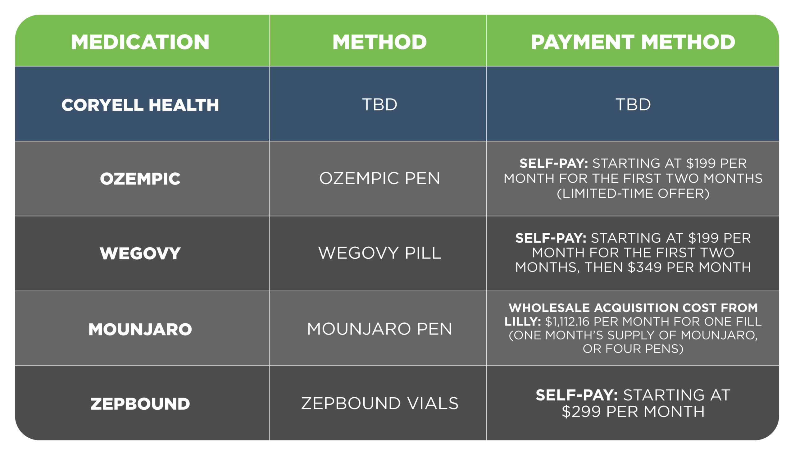 - GLP-1 Pricing: Coryell Health vs Online Pricing
